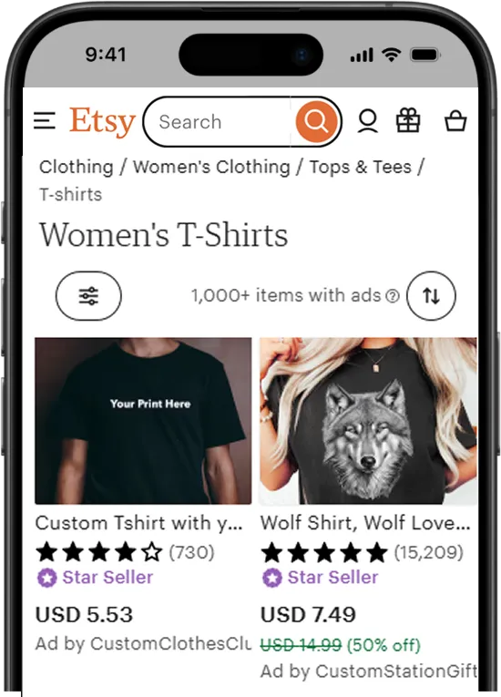 We find in-demand, trending products with low competition and high margins. Our team uses accurate market data so your Etsy store offers items with proven buyer interest and profit potential.